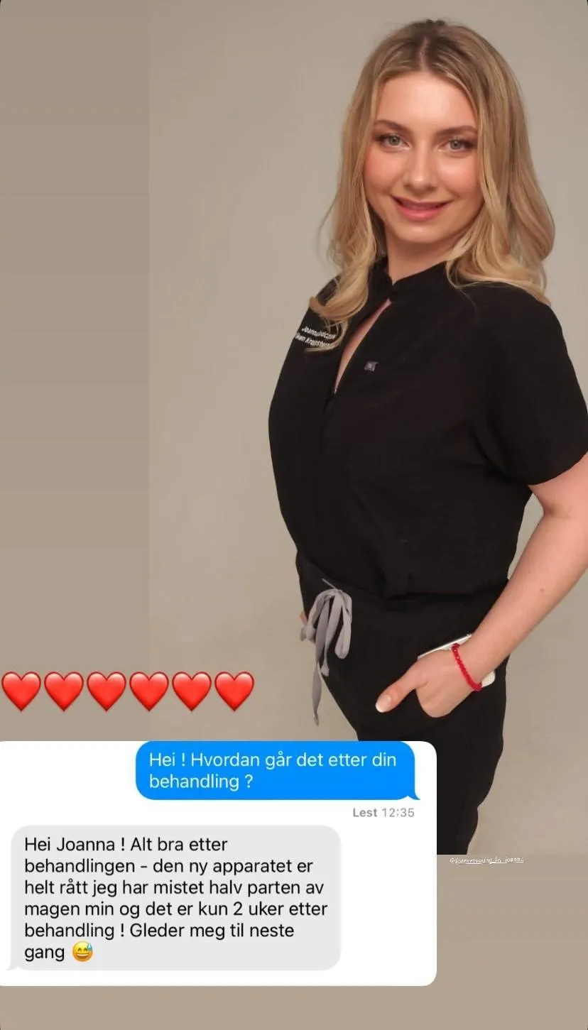 Jeg ivaretar behandlingene og huden din på klinikken, jeg har hjulpet flere kunder fra hele Norge å oppnå kropps målet deres.